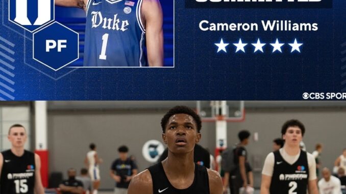 Durham, NC – Cameron Williams, a 6-foot-11 power forward from Phoenix, Arizona, has rapidly established himself as one of the most coveted players in the Class of 2026. Ranked No. 4 overall and the nation’s top power forward by 247Sports Composite, Williams officially committed to Duke University on November 14, 2025, choosing the Blue Devils over finalists Arizona and Texas in a live CBS Sports HQ announcement.