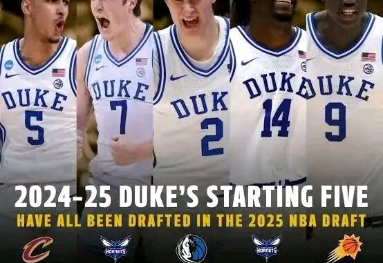 Durham, NC — In a jaw-dropping display of talent, timing, and sheer dominance, Duke University has done what many thought impossible: its entire 2025 starting five has been drafted into the NBA, rewriting the record books and sending shockwaves through the college basketball world. This unprecedented feat cements Duke’s reputation as the ultimate factory for professional talent—and signals a new era in the sport.