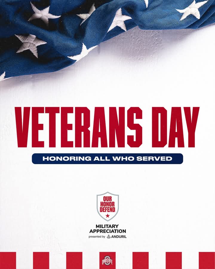 Thank you for your service. Thank you for your sacrifices. Thank you for ensuring that the ideals of freedom, justice, and democracy endure. Today, the Ohio State Buckeyes celebrate you our heroes, past and present. We honor you, we respect you, and we stand with you.